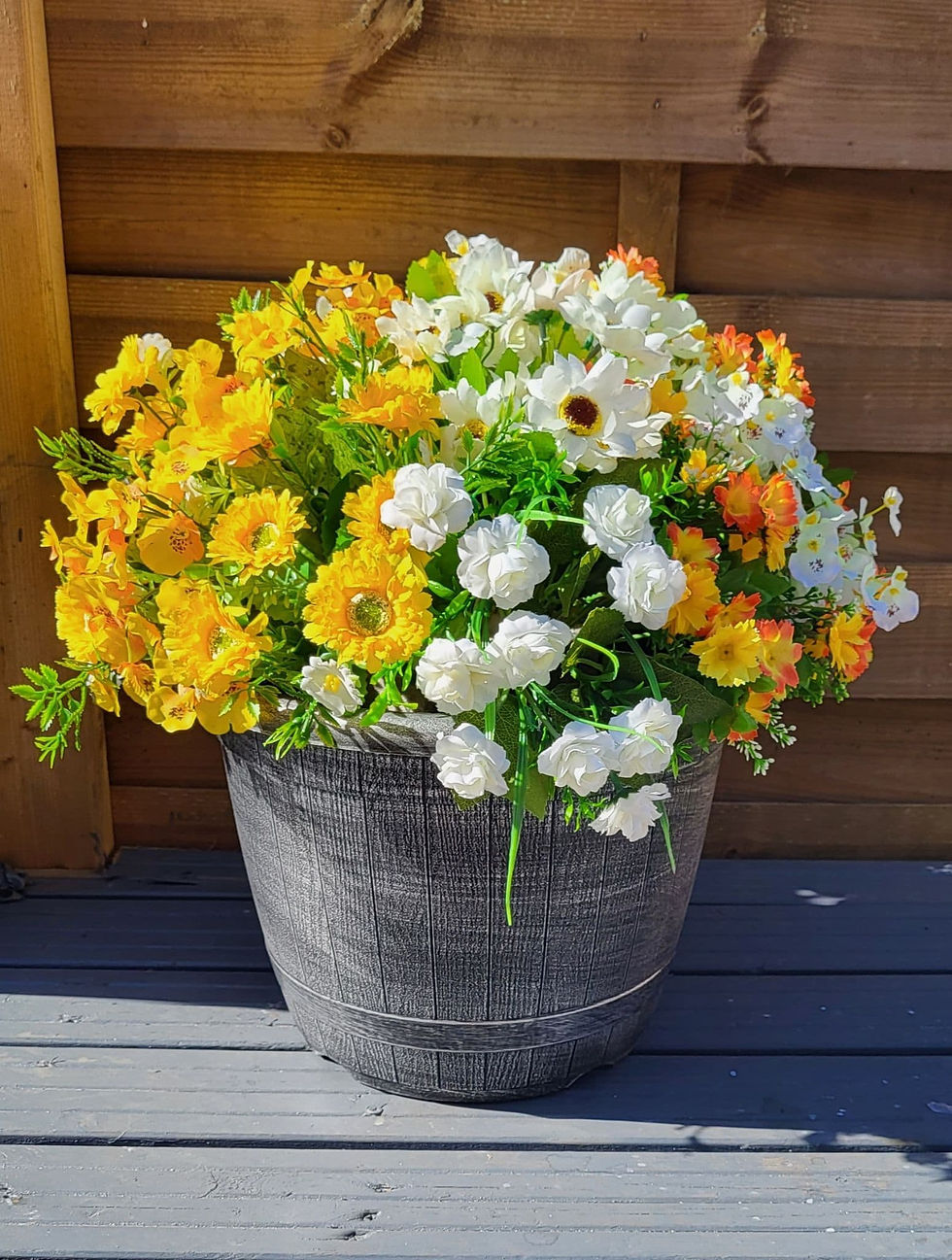 BLOOMING BARRELS - Patio Pot - Outdoor Artificial Flowers