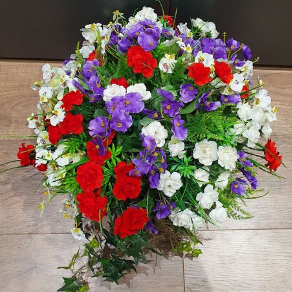 XL JACK Hanging Basket Artificial outdoor Flowers - Red, White & Blue